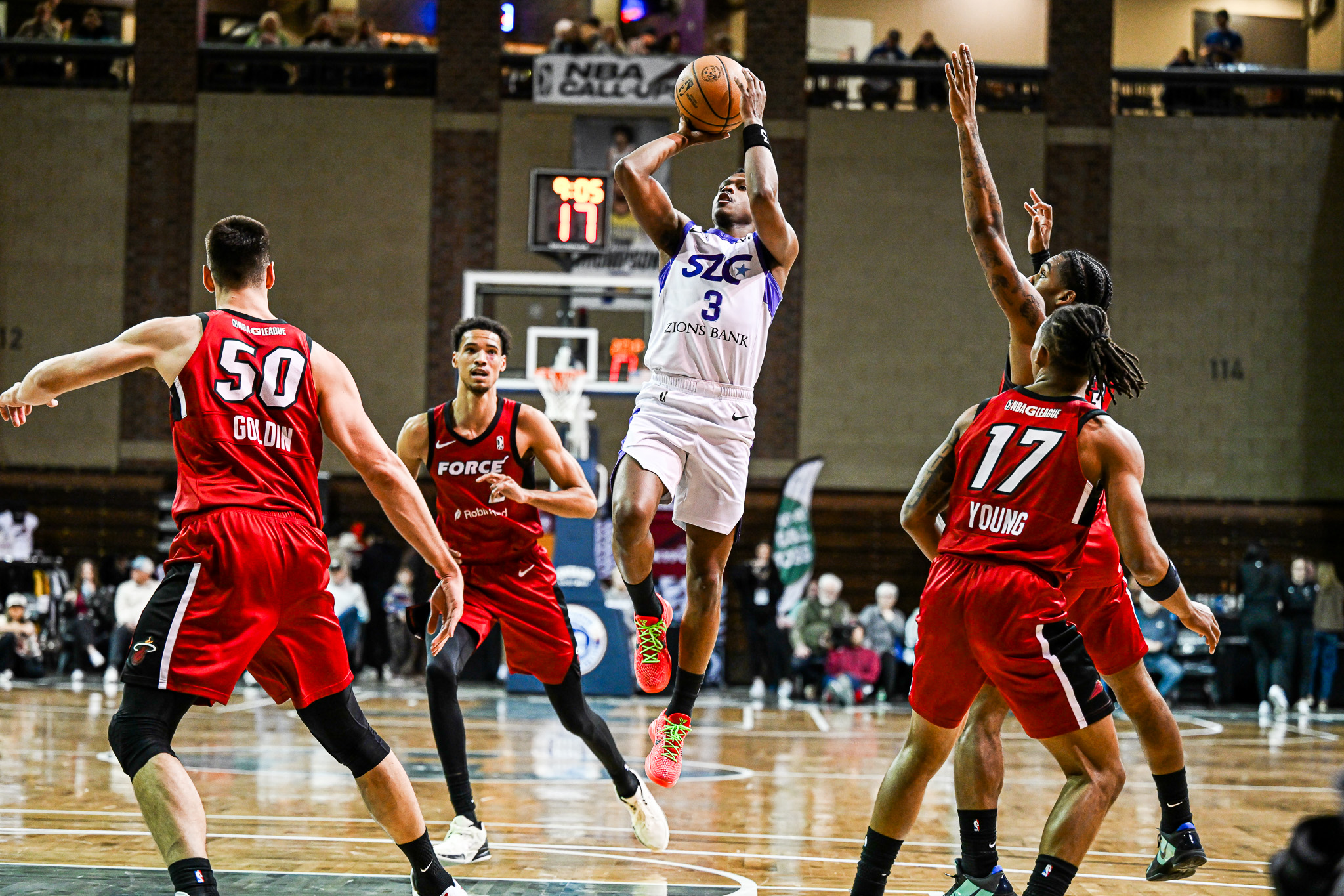 Sioux Falls opened the game with efficient offense, building a 10-point lead midway through the first quarter and closing the period ahead 30-22. Salt Lake City chipped away at the deficit in the second quarter, tying the game at 43-43 at the 6:04 mark. The teams traded baskets the rest of the half, but the Skyforce carried the lead into halftime. Sioux Falls extended its advantage in the second half and held control down the stretch to secure the win.